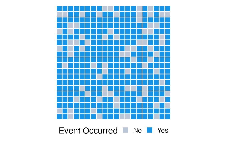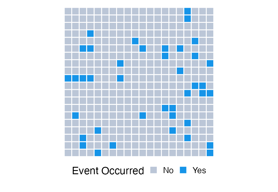 * Use the Palmer penguins dataset * Plot the mean `bill_length_mm` for each species with 95% confidence intervals ```r library(palmerpenguins) penguins ``` ``` ## # A tibble: 344 × 8 ## species island bill_length_mm ## <fct> <fct> <dbl> ## 1 Adelie Torgersen 39.1 ## 2 Adelie Torgersen 39.5 ## 3 Adelie Torgersen 40.3 ## 4 Adelie Torgersen NA ## 5 Adelie Torgersen 36.7 ## 6 Adelie Torgersen 39.3 ## # … with 338 more rows, and 5 more variables: ## # bill_depth_mm <dbl>, ## # flipper_length_mm <int>, ## # body_mass_g <int>, sex <fct>, year <int> ``` --- # Solution Or one possible solution ```r mn_se <- penguins %>% group_by(species) %>% summarize( mean = mean(bill_length_mm, na.rm = TRUE), se = sd(bill_length_mm, na.rm = TRUE) / sqrt(n()), lower = mean + qnorm(0.025) * se, upper = mean + qnorm(0.975) * se, ) %>% mutate(species = fct_reorder(species, mean)) ggplot(mn_se, aes(mean, species)) + geom_errorbarh(aes(xmin = lower, xmax = upper)) + geom_point() ``` --- class: middle <!-- --> --- # Change the height ```r ggplot(mn_se, aes(mean, species)) + geom_errorbarh(aes(xmin = lower, xmax = upper), height = 0.2) + geom_point() ``` <!-- --> --- # Slight variant ```r ggplot(mn_se, aes(mean, species)) + geom_linerange(aes(xmin = lower, xmax = upper)) + geom_point() ``` <!-- --> --- # Dodging ```r props <- mpg %>% count(drv, year) %>% mutate(prop = n / sum(n), prop_se = sqrt((prop * (1 - prop)) / n)) head(props) ``` ``` ## # A tibble: 6 × 5 ## drv year n prop prop_se ## <chr> <int> <int> <dbl> <dbl> ## 1 4 1999 49 0.2094017 0.05812594 ## 2 4 2008 54 0.2307692 0.05733508 ## 3 f 1999 57 0.2435897 0.05685528 ## 4 f 2008 49 0.2094017 0.05812594 ## 5 r 1999 11 0.04700855 0.06381703 ## 6 r 2008 14 0.05982906 0.06338631 ``` --- # Bar plot ```r ggplot(props, aes(drv, prop)) + geom_col(aes(fill = factor(year)), position = "dodge") ``` <!-- --> --- # 🤦♂️ ```r ggplot(props, aes(drv, prop)) + geom_col(aes(fill = factor(year)), position = "dodge") + geom_errorbar( aes(ymin = prop - 1.96 * prop_se, ymax = prop + 1.96 * prop_se), color = "gray40" ) ``` <!-- --> --- ```r *pd <- position_dodge(.9) ggplot(props, aes(drv, prop)) + * geom_col(aes(fill = factor(year)), position = pd) + geom_errorbar( aes(ymin = prop - 1.96 * prop_se, ymax = prop + 1.96 * prop_se), color = "gray40", * position = pd ) ``` <!-- --> --- class: inverse-blue background-image: url(https://media.tenor.co/images/95fa72ff808f6b601e16df7ae25e0cec/raw) background-size: cover --- ```r pd <- position_dodge(.9) ggplot(props, aes(drv, prop)) + geom_col(aes(fill = factor(year)), position = pd) + geom_errorbar( aes(ymin = prop - 1.96 * prop_se, ymax = prop + 1.96 * prop_se, * group = year ), color = "gray40", position = pd ) ``` <!-- --> --- ```r pd <- position_dodge(.9) ggplot(props, aes(drv, prop)) + geom_col(aes(fill = factor(year)), position = pd) + geom_errorbar( aes( ymin = ifelse( * prop - 1.96 * prop_se < 0, * 0, prop - 1.96*prop_se * ), ymax = prop + 1.96 * prop_se, group = year ), color = "gray40", position = pd, * width = 0.5, * size = 1.4 ) ``` --- class: middle <!-- --> --- # Explain error bars Error bars could represent any of the following * Standard deviation (of the data) * Standard error (of the estimate) * Confidence interval (of the estimate) -- Possibly through a caption, make sure your audience knows what your represent. -- If Confidence intervals, state the interval size (e.g., 68%, 90%, 95%) --- # Thinking about uncertainty Uncertainty means exactly what it sounds like - we are not 100% sure. * We are nearly always uncertain of future events (forecasting) * We can also be uncertain about past events + I saw a parked car at 8 AM, but the next time I looked at 2PM it was gone. What time did it leave? -- ### Quantifying uncertainty * We quantify our uncertainty mathematically using probability * Framing probabilities as frequencies is generally more intuitive --- class: inverse-blue center middle # Framing a single uncertainty --- background-image:url("https://serialmentor.com/dataviz/visualizing_uncertainty_files/figure-html/probability-waffle-1.png") background-size:contain --- # How do we make these? * Start out by making a grid ```r grid <- expand.grid(x = 1:20, y = 1:20) head(grid) ``` ``` ## x y ## 1 1 1 ## 2 2 1 ## 3 3 1 ## 4 4 1 ## 5 5 1 ## 6 6 1 ``` ```r tail(grid) ``` ``` ## x y ## 395 15 20 ## 396 16 20 ## 397 17 20 ## 398 18 20 ## 399 19 20 ## 400 20 20 ``` --- # Look at the grid ```r ggplot(grid, aes(x, y)) + geom_tile(color = "gray40", fill = "white") + theme_void() ``` <!-- --> --- # Create occurrence rate * For each sequence of `x`, create a variable that has the given occurence rate -- ### How? -- * Plenty of options, here's one -- ## Please follow along --- # Consider 10% ```r # create your grid grid <- expand.grid(x = 1:20, y = 1:20) # n to sample n_sample <- nrow(grid) * .10 set.seed(86753098) samp <- sample(seq_len(nrow(grid)), n_sample) head(samp) ``` ``` ## [1] 318 134 180 283 177 248 ``` ```r length(samp) ``` ``` ## [1] 40 ``` --- # Create the variable ```r grid <- grid %>% rownames_to_column("row_id") %>% mutate(event = ifelse(row_id %in% samp, "Yes", "No")) head(grid) ``` ``` ## row_id x y event ## 1 1 1 1 No ## 2 2 2 1 No ## 3 3 3 1 No ## 4 4 4 1 No ## 5 5 5 1 Yes ## 6 6 6 1 No ``` --- # Fill in ```r ggplot(grid, aes(x, y)) + geom_tile(aes(fill = event), color = "white") + theme_void() ``` <!-- --> --- # Customize ```r library(colorspace) ggplot(grid, aes(x, y)) + geom_tile(aes(fill = event), color = "white", size = 1.4) + scale_fill_manual( name = "Event Occurred", values = c( desaturate(lighten("#1694E8", 0.5), 0.7), "#1694E8" ) ) + coord_fixed() + theme_void() + theme(legend.position = c(0.75, 0), legend.direction = "horizontal", plot.margin = margin(b = 1, unit = "cm")) ``` --- class: middle <!-- --> --- # Chance of rain <!-- --> --- # Vary grid size ### 10 x 10 <!-- --> --- # Vary grid size ### 20 x 20 <!-- --> --- # Vary grid size ### 30 x 30 <!-- --> -- Optimal size might depend on your ve